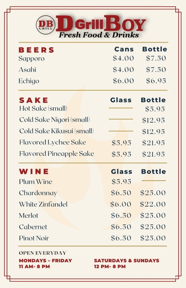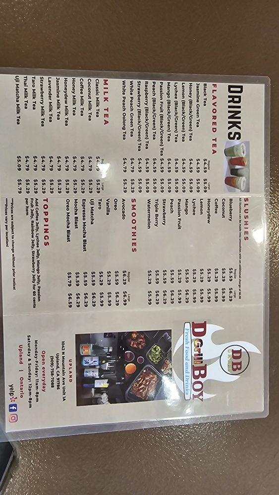 D Grill Boy is a sophisticated restaurant located in Upland, CA, offering Asian Fusion cuisine, juice bars, smoothies, and breakfast & brunch options. The menu provides a variety of delicious dishes perfect for a quiet night at home or dining out. Customers praise the fresh and well-seasoned food, with highlights like the hibachi-style steak, chicken, and shrimp combo. While some mention slight wait times for their orders, overall, the staff is friendly, and the prices are reasonable. The classy ambiance, outdoor seating, and dog-friendly policy make it a versatile spot for any occasion. With catering options available, D Grill Boy caters to various needs, ensuring a satisfying dining experience for all.